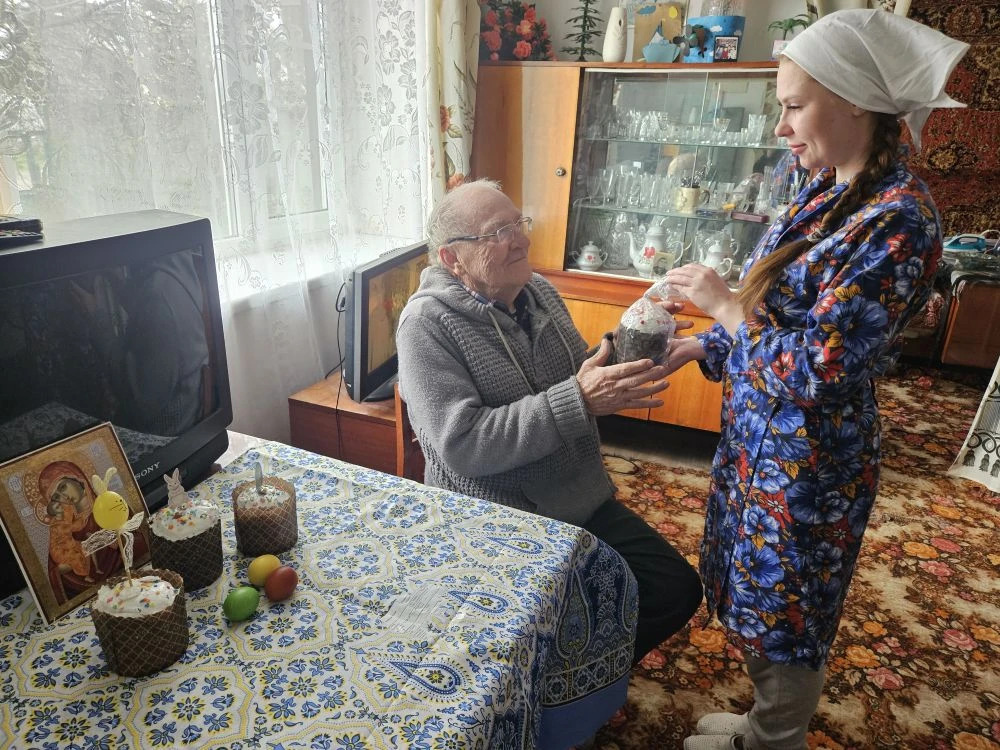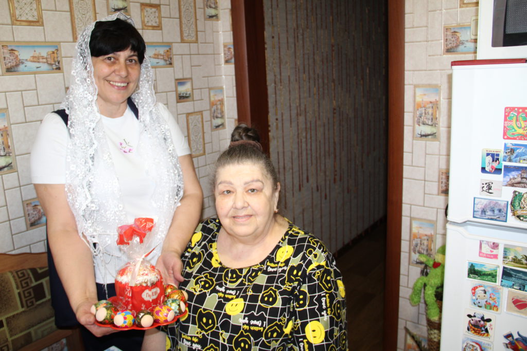 Не у всех маломобильных получателей социальных услуг учреждения была возможность побывать в храме. Социальные работники отозвались на просьбы граждан, доставили из храма освященные атрибуты праздничного стола. Поздравления от социальных работников являются проявлением заботы и внимания к людям, находящимся на социальном обслуживании.