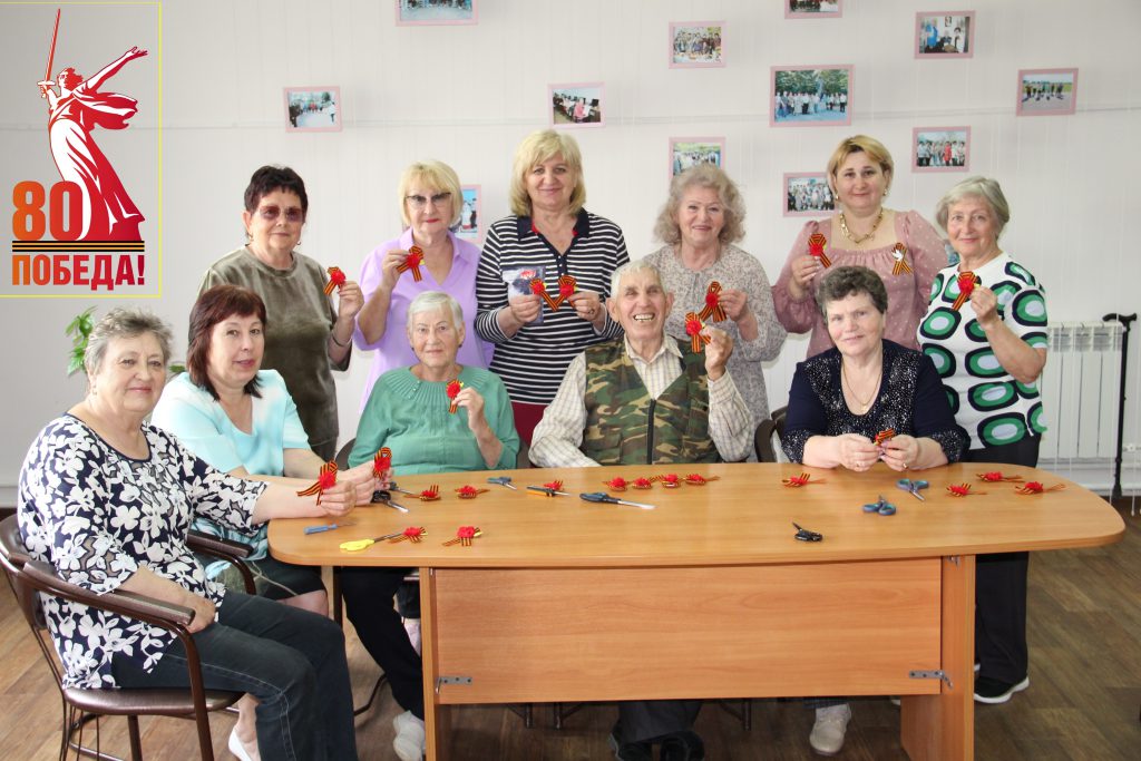 В преддверии 80-летия Великой Победы, в рамках мероприятий Года защитника Отечества, участники клуба «Серебряные волонтёры», действующего на базе Ленинградского КЦСОН, провели мастер-класс по изготовлению памятных брошей из Георгиевских лент. Приняли участие получатели социальных услуг отделений социального обслуживания на дому.