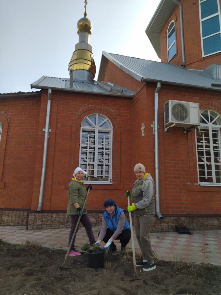 В отделении социального обслуживания на дому № 9 создан волонтерский отряд «Открытые сердца». Одним из многочисленных направлений практики волонтерской группы является оказание посильной помощи в обустройстве Крестоявленского храма посёлка Октябрьского.