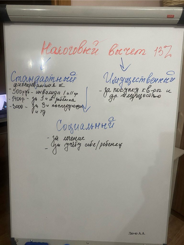 На групповом занятии ребята узнали, что такое налоговый вычет, какие виды бывают и имеют ли они право на его получение. А еще узнали, что право на получение налогового вычета имеют не все граждане, а только те, кто понимает и соблюдает определённые условия. Важно отметить, что налоговые вычеты предназначены для работающих граждан, то есть тех, кто официально трудоустроен и платит налоги.