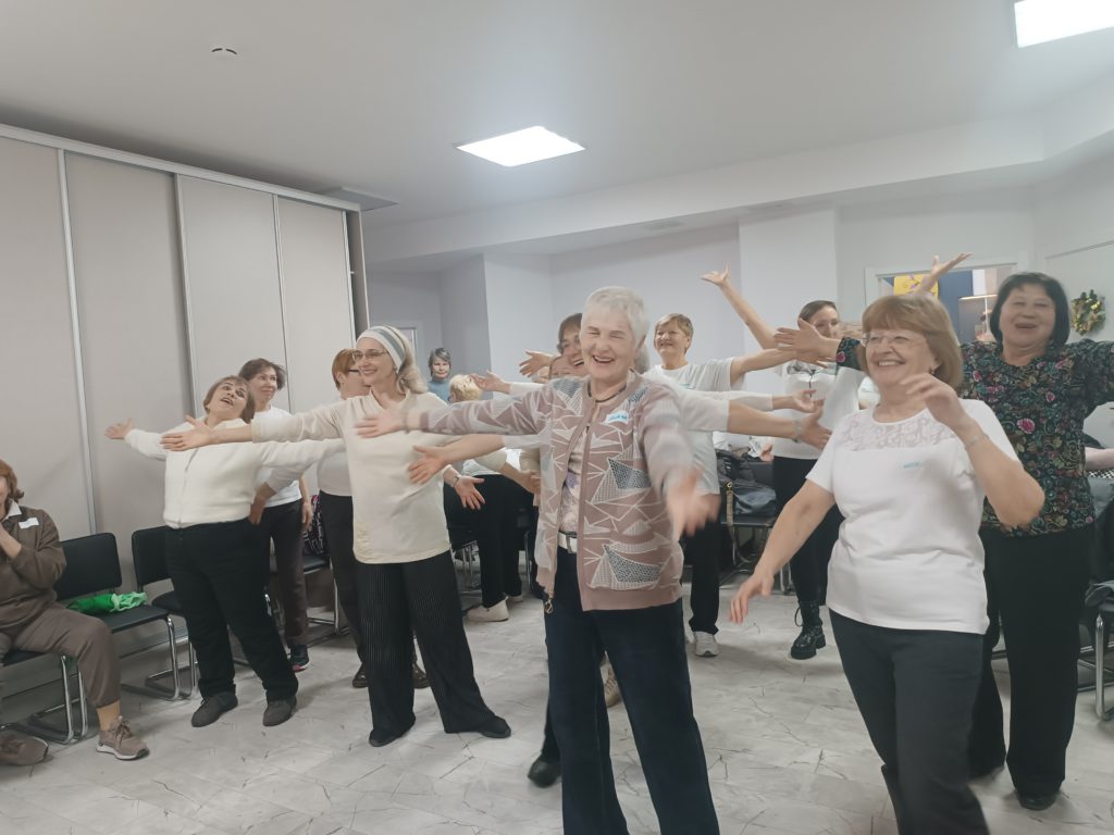 Занятия помогают снизить давление, снять напряжение и способствуют социализации пожилых людей.