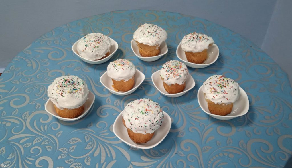 Затем мы замесили тесто, испекли вкусные куличи, а когда они остыли приступили к приготовлению глазури. Готовить глазурь доверили старшим ребятам. Под их руководством, миксер превращал прозрачный белок в густое белое облако. В глазурь добавили капельку лимонного сока, чтобы она была блестящей, ребята попробовали сладкую белую пену на вкус. Дети с нетерпением ждали того момента, когда будут создавать свой шедевр. Каждый ребенок получил по небольшому куличу. Ребята учились наносить глазурь на кулич так, чтобы получилась ровная, красивая, белоснежная шапочка, как сугроб.