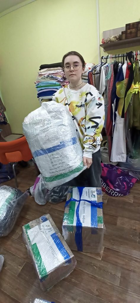 В мае мы отправили очередную гумпомощь: пледы, сшитые в нашей добровольческой мастерской, носки, трусы, полотенца для бойцов, которые проходят лечение в госпиталях. Односельчане собрали продукты, сладости. Их передадут тем, кто в этом нуждается.