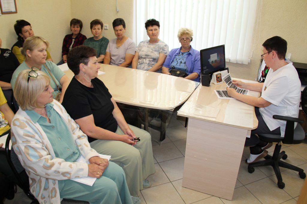 В ходе очередного заседания состоялась профилактическая беседа-диалог. Старшая медицинская сестра Крыловской участковой больницы познакомила с информацией о сохранении и укреплении здоровья соцработников в целях минимизации профессиональных рисков при выполнении служебных обязанностей.