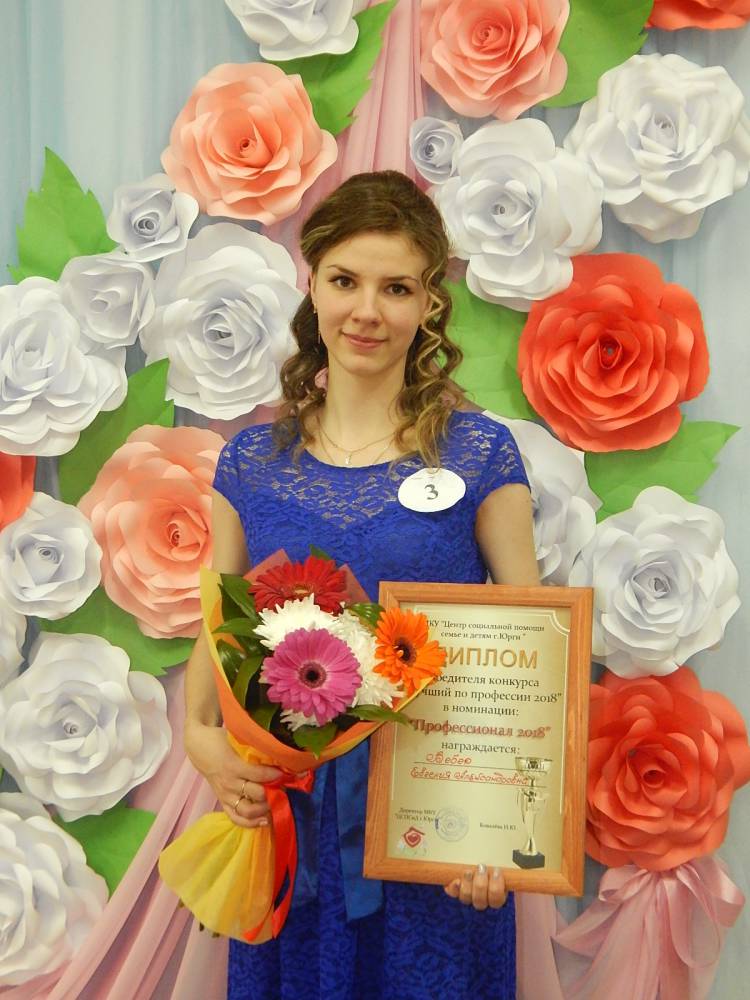 Евгения Александровна пришла работать в учреждение совсем недавно, сразу после окончания учебного заведения, но уже зарекомендовала себя одним из лучших специалистов. Без Евгении не обходится ни одно мероприятие. Вот и в этом году она приняла участие уже в двух проектах, и в обоих достигла профессиональных высот. Второе почетное место в областном конкурсе «Семья, экология, культура» придало сил и уверенности Жене, предопределило ее победу и в городском конкурсе «Лучший по-профессии».