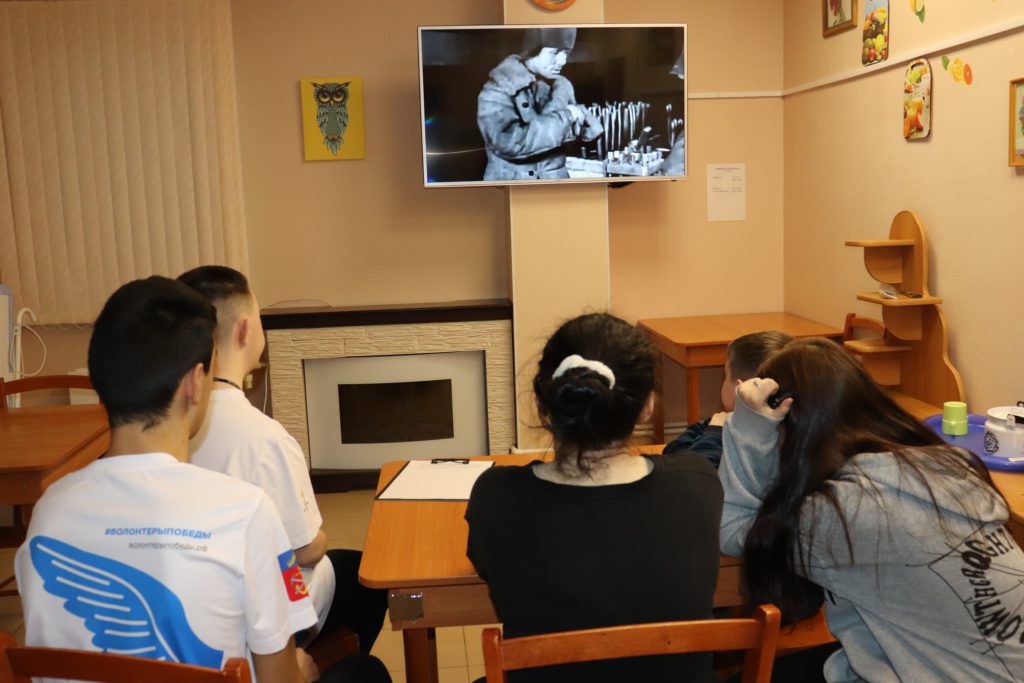 В День полного освобождения Ленинграда от фашистской блокады Волонтёры Победы Полярнинского центра социального обслуживания организовали для воспитанников отделения социальной реабилитации несовершеннолетних просмотр Всероссийского видеодневника «Код доступа: Матч жизни», повествующий о событиях 1941-1944 годов. В фильме звучат воспоминания свидетелей, которые 872 дня боролись за жизнь и видели все ужасы преступлений немецко-фашистских захватчиков.