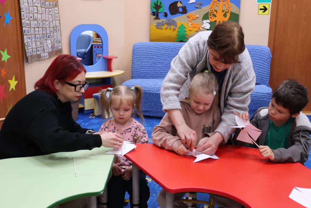 После просмотра мультфильма ребята решили сделать необычные сувениры в честь праздника. Под руководством взрослых дети мастерили яркие ромашки-вертушки. Эти забавные игрушки символизируют чистоту чувств и радость семейных отношений.